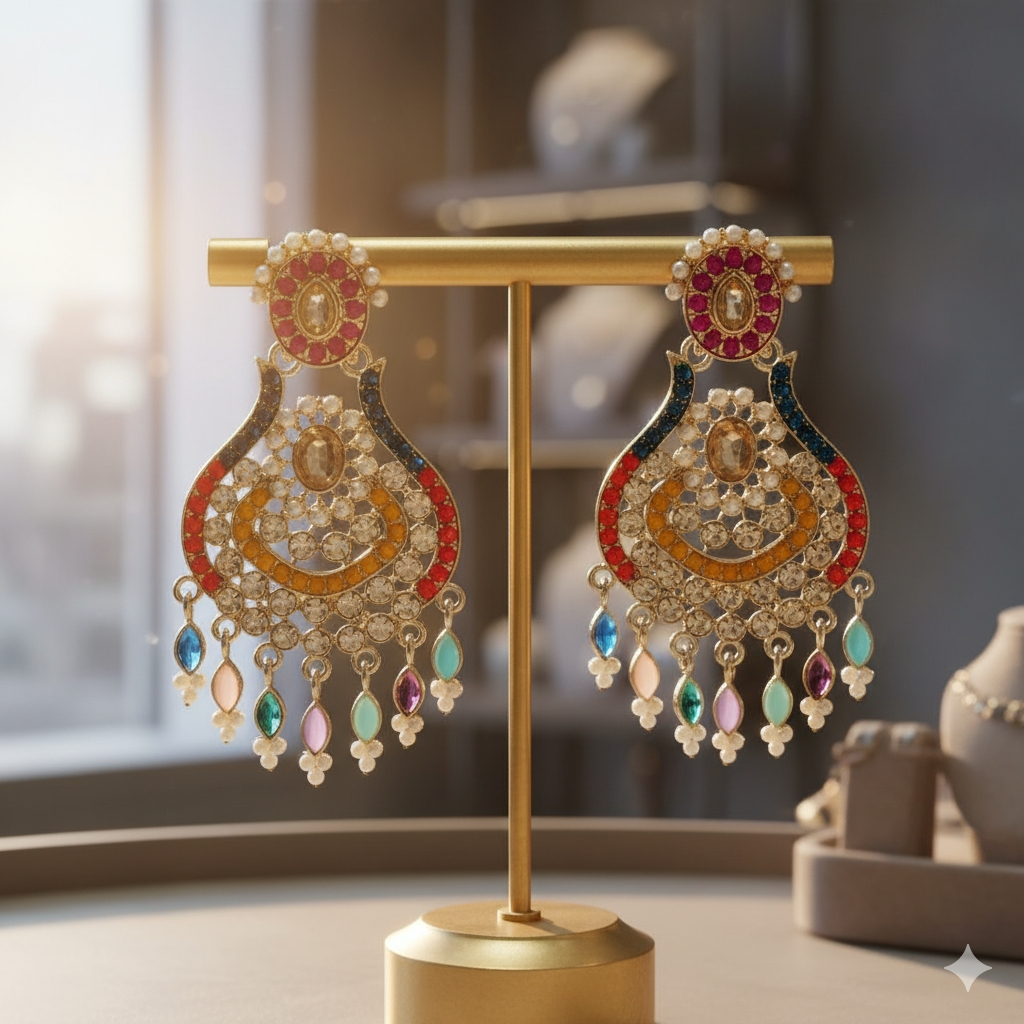 Perfect for weddings, festive evenings, and grand celebrations — these earrings are designed to turn heads effortlessly.